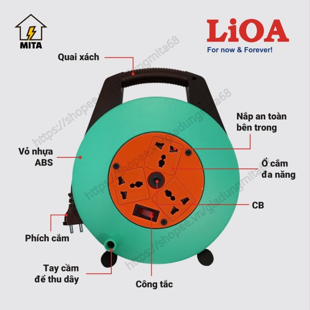 Giới thiệu Ổ cắm điện LiOA kiểu xách tay dây dài 10m XTD10-2-10A/15A - MITA