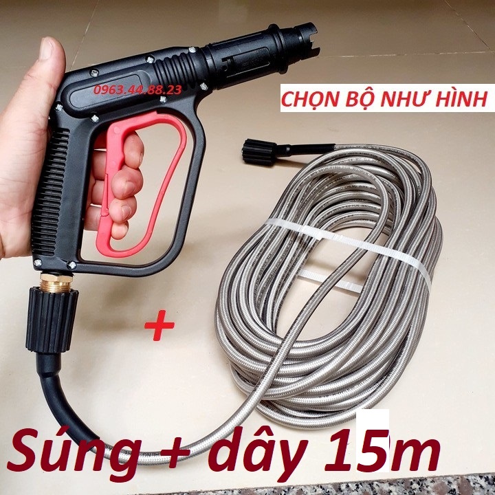 Giới thiệu Bộ dây rửa xe và súng xịt - súng rửa xe áp lực caoThông tin sản phẩm: Bộ dây và súng xịt - súng rửa xe áp lực cao là bộ sản phẩm vô cùng tiện dụng cho quý khách có nhu cầu thay mới, bổ sung thay đổi tùy vào mực đích công việc. Bộ sản phẩm này phù hợp với các máy xịt rửa áp lực cao, máy rửa xe áp lực, máy rửa xe mini, máy xịt rửa máy lạnh, vệ sinh nhà cửa, nhà hàng, quán ăn... Bộ sản phẩm vô cùng hữu ích, giúp cho công việc của quý khách đơn giản hơn rất nhiều.