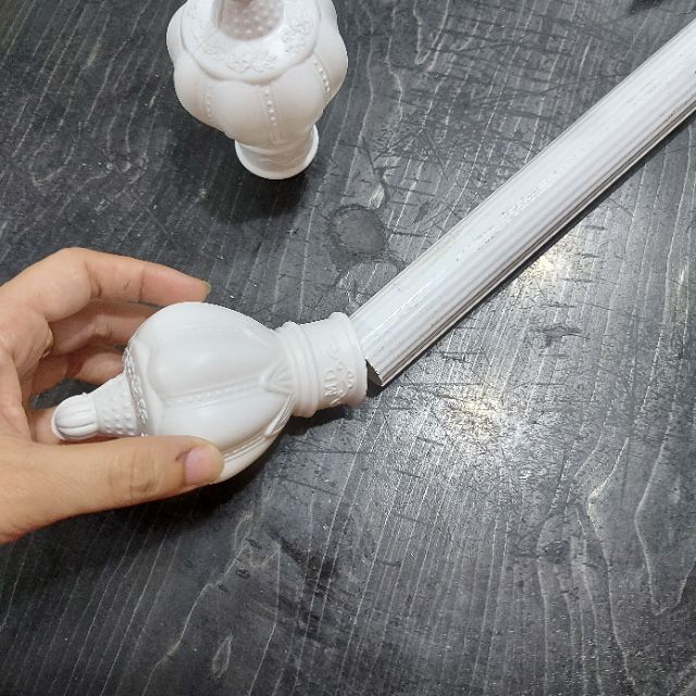 2. Bộ nối 2 thanh: 2 thanh treo cùng size + 3 cái đỡ (loại 1 thanh đơn) + 1 cút nối + 2 ốp chụp trang trí + tặng kèm 2 chấu giữ cố định dây cột rèm + kèm đầy đủ đinh vít.