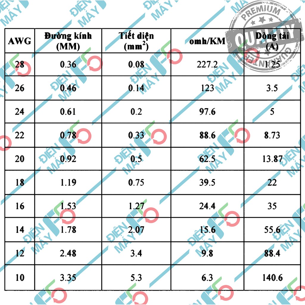 + Chịu tải rất cao (AWG càng nhỏ, chịu tải càng lớn)