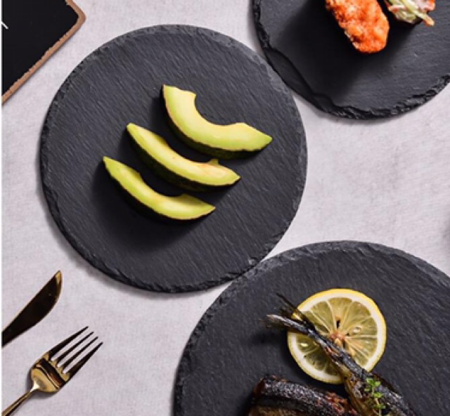 Nhà cửa & Đời sống > Bộ đồ bàn ăn > Dĩa || Đĩa đá đen tự nhiên chụp đồ ăn cao cấp, sang trọngCòn hàng