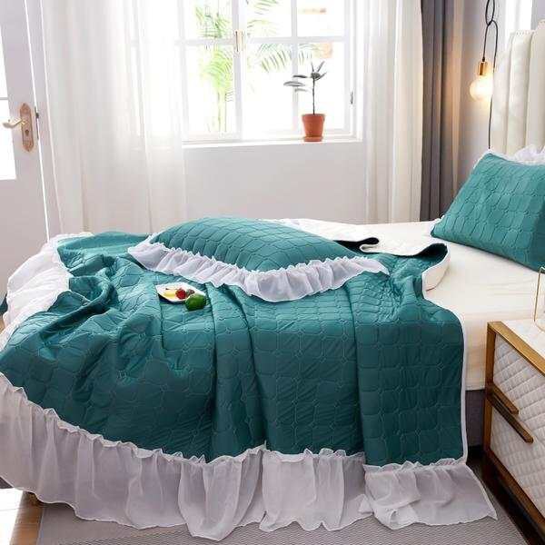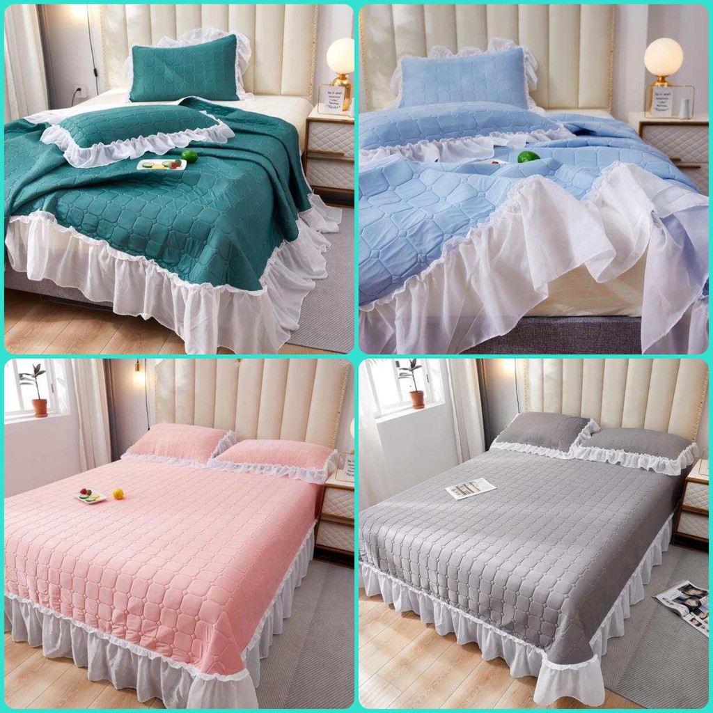 Chiếu Điều Hòa Cao Su Viền Bèo Công Chúa Mát Lạnh, Chiếu Cao Su Phủ Bèo Ren Điệu Đà Mẫu Mới 2022 (tặg kèm 2 vỏ gối đầu)