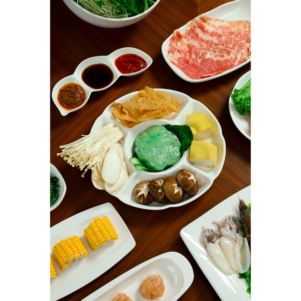 Khay Lẩu 5 Ngăn Giả Sứ Horeca Nhựa Melamine Cao Cấp Fataco Việt Nam đủ sizeBề mặt được xử lý đặc biệt sáng bóng,đẹp tựa chén dĩa bằng sứ cao cấp.