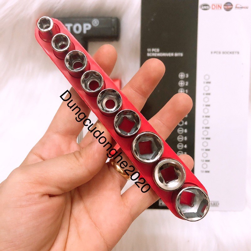 - 9 đầu típ 1/4" ( 6.35mm): 5, 6, 7, 8, 9, 10, 11, 12, 13mm