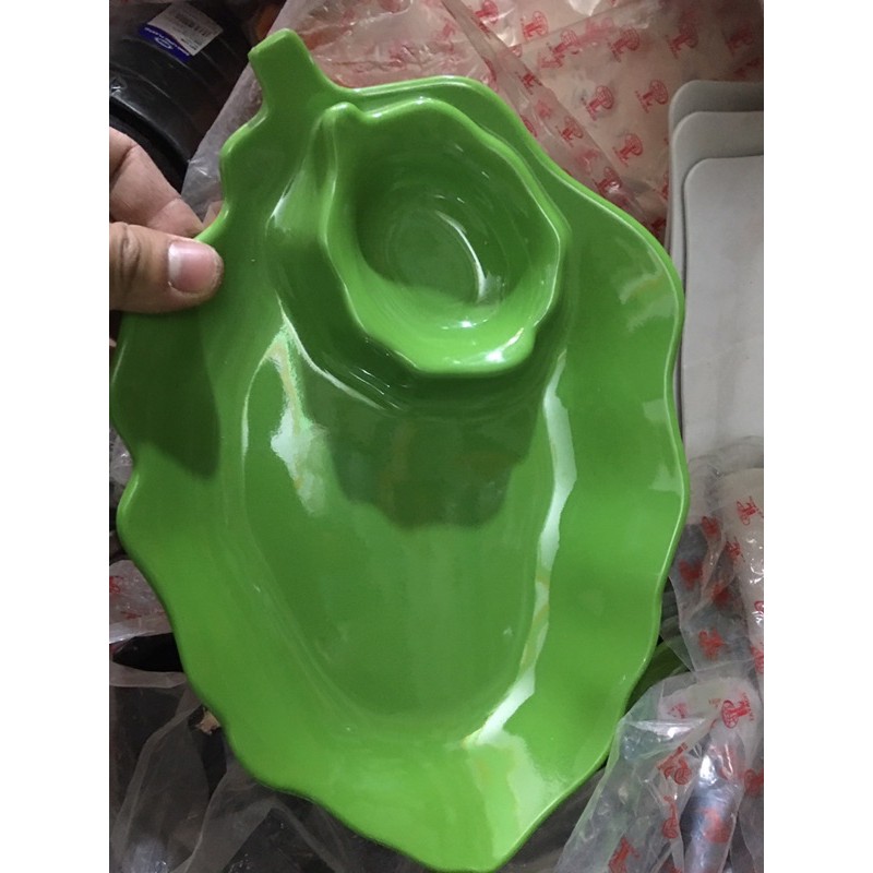 Nhà cửa & Đời sống > Bộ đồ bàn ăn > Dĩa || Đĩa nhựa phíp fataco hình lá có ngăn đựng nước chấm (có đủ màu)Còn hàng