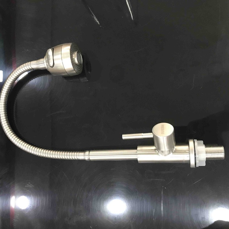 Vòi rửa chén lạnh lò xo dẻo inox 304, vòi chén dẻo, 2 chế độ nước, tăng áp