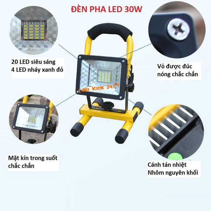 1 Đèn LED Xách Tay Tích Điện Siêu Sáng 30W