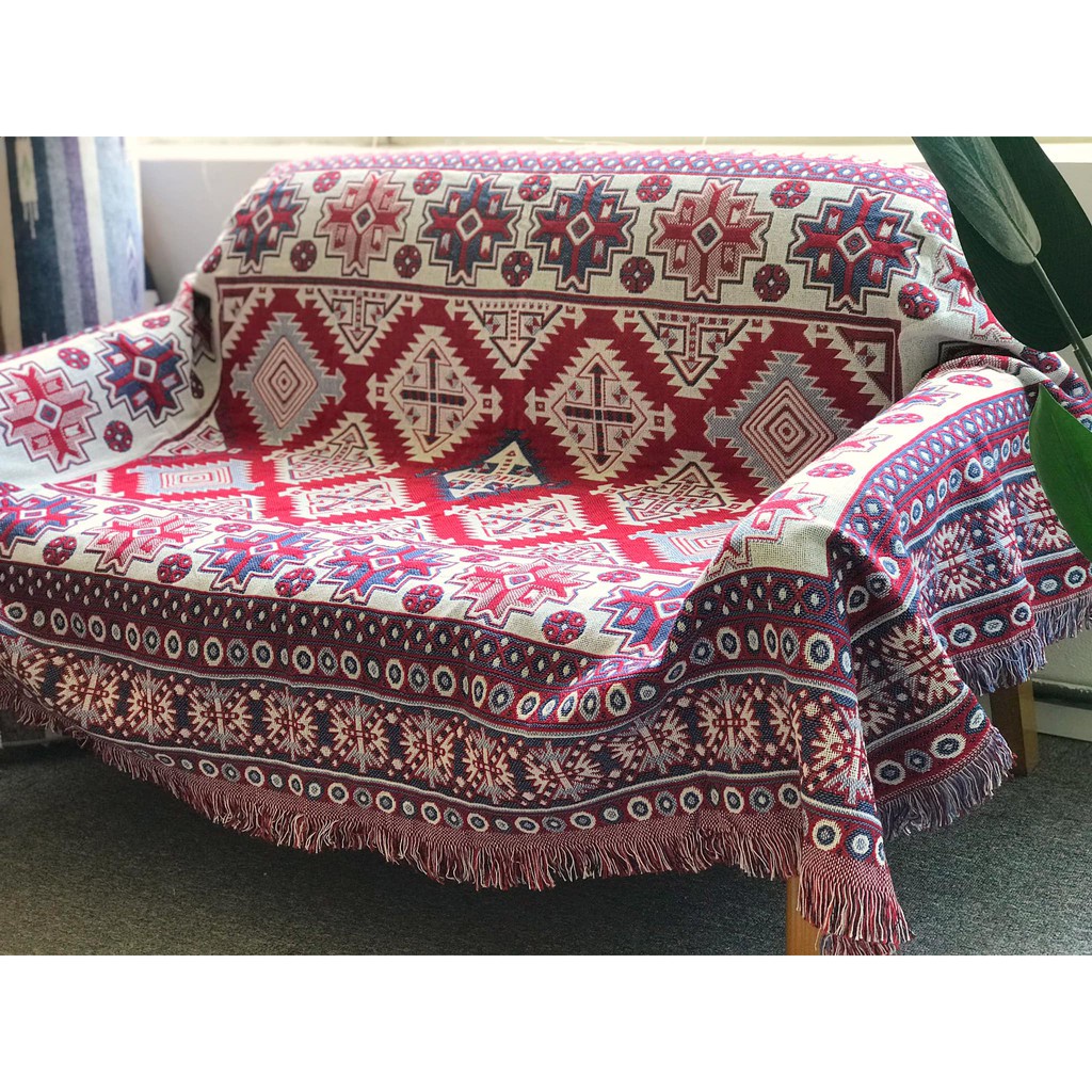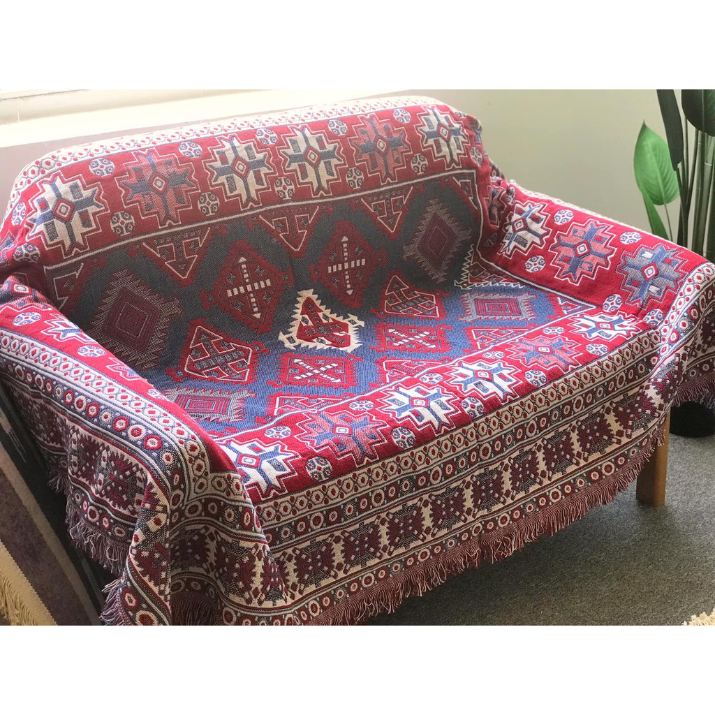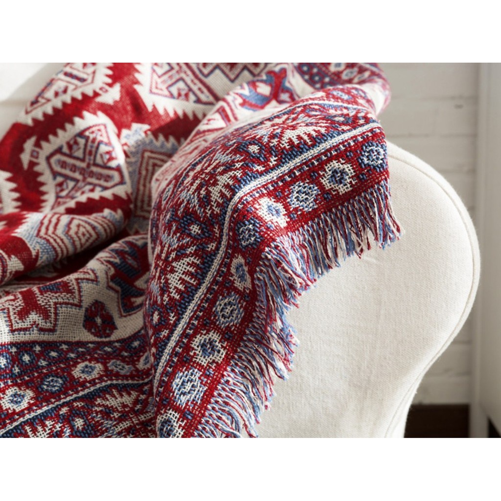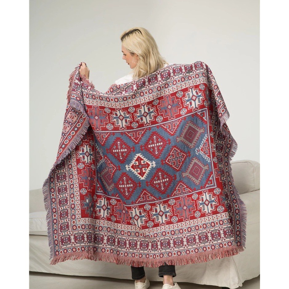 Thảm thổ cẩm cấp cấp với hoa văn, họa tiết theo phong cách Retro đầy quyến rũ bí ẩn.Sự kết hợp giữa màu đỏ cổ điển, chất liêu bông dệt kim khi sờ vào khiến bạn cảm thấy vô cùng mềm mịn, thoải mái.