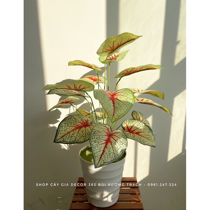 Note: riêng mẫu khoai đỏ giá rẻ hơn vì thấp nhỏ hơn chút (lá 12x17cm, cao 60cm, lên chậu cao 70cm ạ)