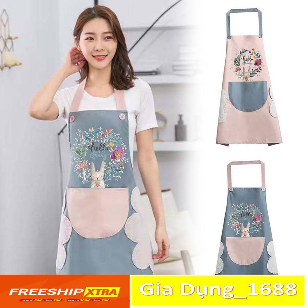 Tạp dề tạp dề chống thấm nước có lau tay họa tiết thỏ xinh nhiều màu sắc