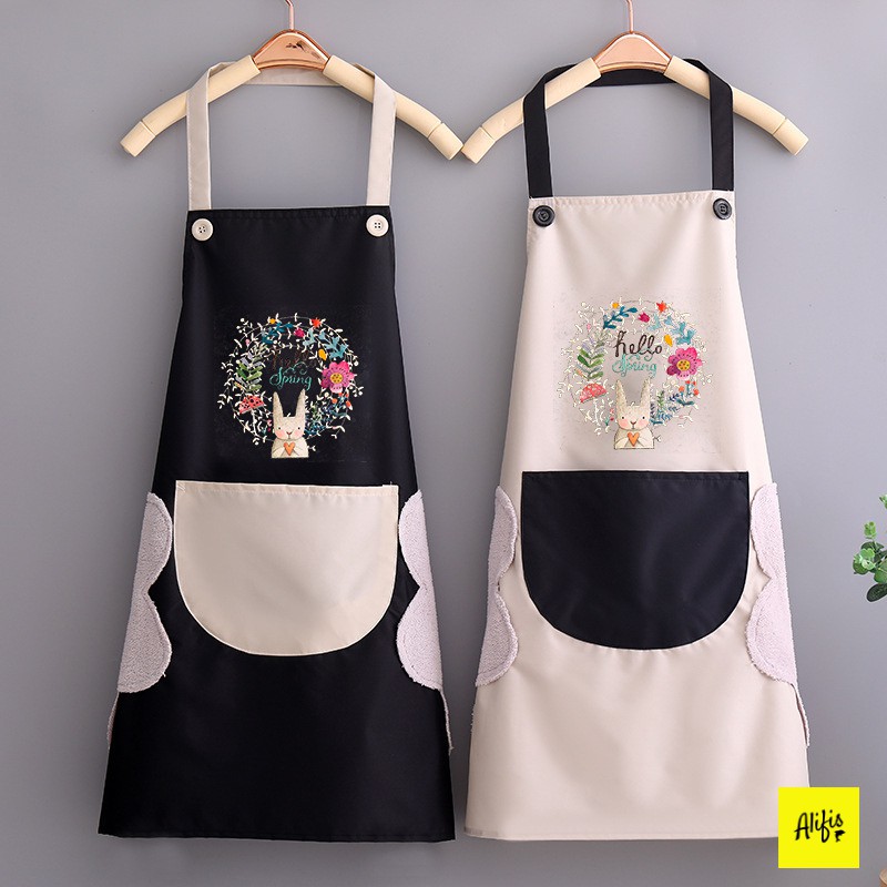 Giới thiệu Tạp dề tạp dề chống thấm nước có lau tay họa tiết thỏ xinh nhiều màu sắc
