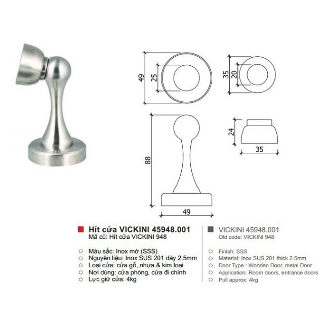Giới thiệu Hít Cửa Chống Đập INOX - Chặn Cửa Nam Châm VICKINI chất lượng