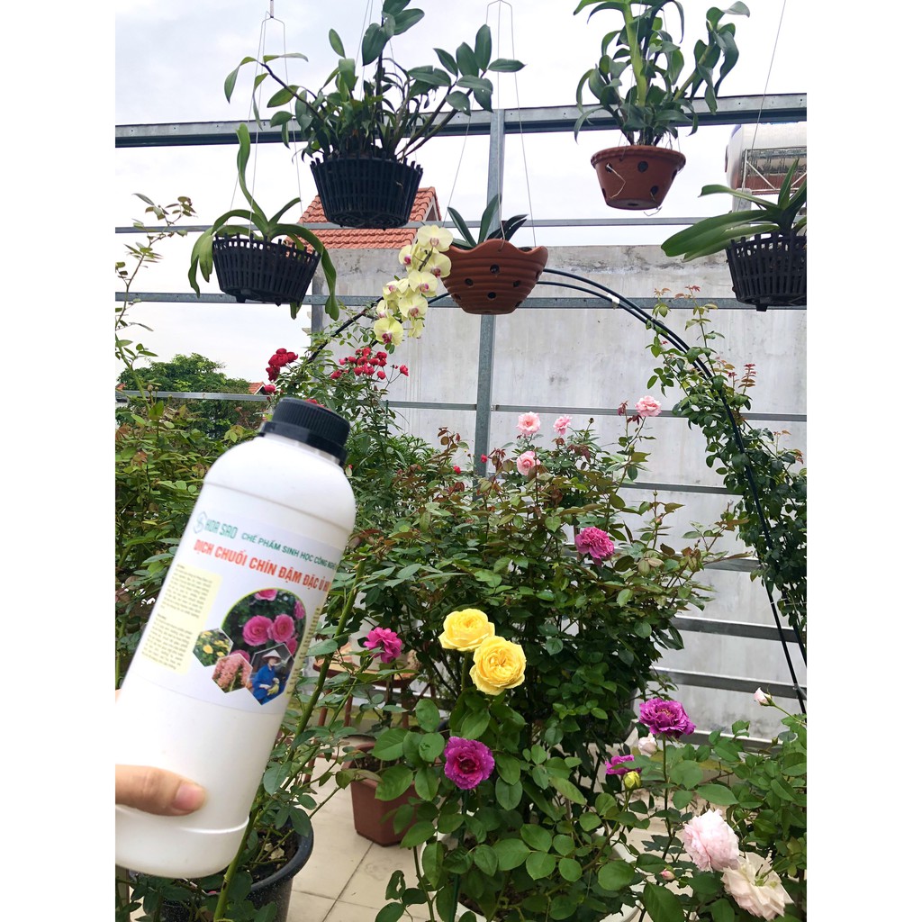Dịch chuối kết hợp bón phân Nhật, vừa bổ sung dinh dưỡng và vi lượng cho cây, giúp cây sai hoa, màu thắm, bông to lâu tàn.