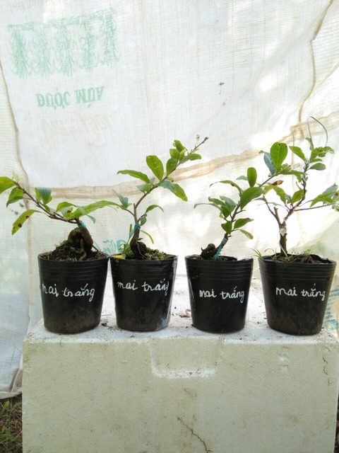 Mai trắng Cây ghép giống thái hoa mới,hoa nhiều cánh hơn mai trắng ta,với lại hoa quanh năm nha khách.Cây rất dễ chăm sóc,k sâu bệnh,gửi cây ghép như hình 4,về khách tước lá là cây cho hoa ấy ạ.