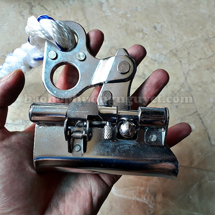 - Dây an toàn: Nối trực tiếp với khóa cứu sinh phòng các tình huống rủi ro thì ổ khóa sẽ lập tức khóa lại giữ chặt người trên dây cứu sinh.