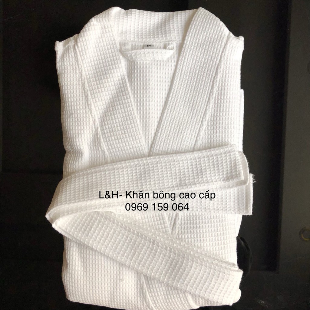 ÁO CHOÀNG TẮM SỢI TỔ ONG có chất liệu vải tổ ong với độ sáng bóng nhẹ. Ưu điểm của loại áo này là thấm hút tốt, kiểu dáng sang trọng và khá bền theo thời gian. Vì thế, các khách sạn, resort thường ưa chuộng sử dụng loại áo sợi vải tổ ong.