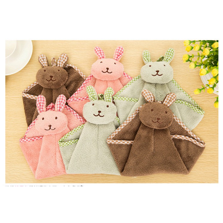 Khăn lau tay hình chú thỏ được may bằng vải lông mịn thấm hút nhanh, không đổ lông, ra màu, không bám dầu mỡ, mau khô.Khách ghi chú chọn màu khi đặt hàng (nếu k ghi chú shop giao màu ngẫu nhiên)