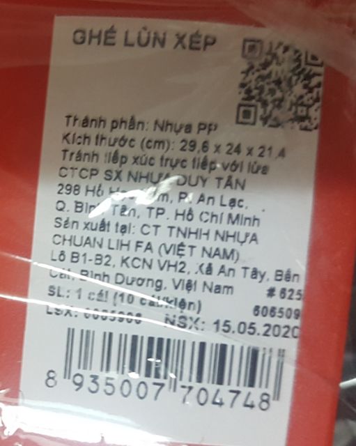 Ghế nhựa xếp gấp gọnKích thước: 29.6 x 24 x 21.4 cm.