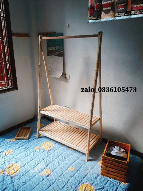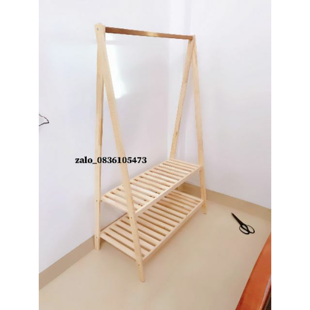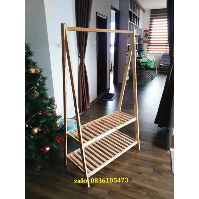 Kệ treo quần áo chữ A 2 tầng bằng gỗ