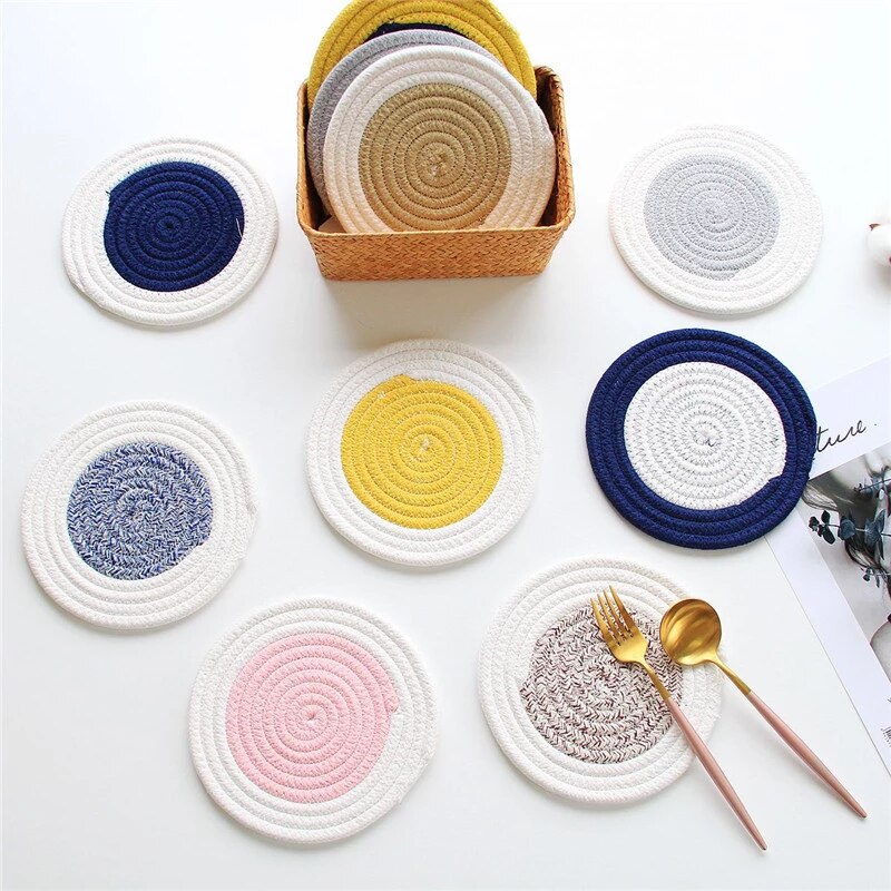 Nhà cửa & Đời sống > Bộ đồ bàn ăn > Khay, tấm lót bàn ăn || Miếng lót cốc, lót ly thấm nước bằng vải bện xinh xắnCòn hàng