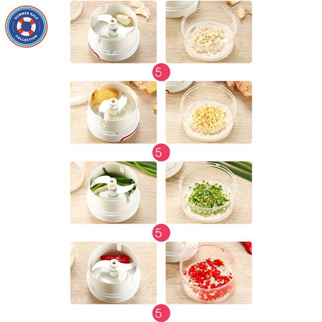 Cực dễ dàng, chỉ cần cho đồ vào, đậy nắp, kéo & thả phần dây kéo liên tục, dây kéo sẽ làm quay lưỡi cắt bên trong, xay nhuyễn đồ ăn không hề vất vả. Dùng được mọi lúc mọi nơi, ko cần điện.