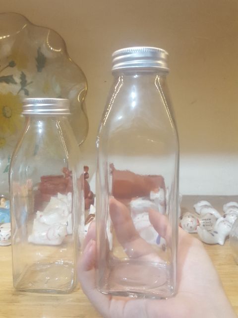 Nhà cửa & Đời sống > Bộ đồ bàn ăn > Bình nước & phụ kiện || Chai thủy tinh 300ml thân vuông nắp nhôm miệng rộng có cổCòn hàng