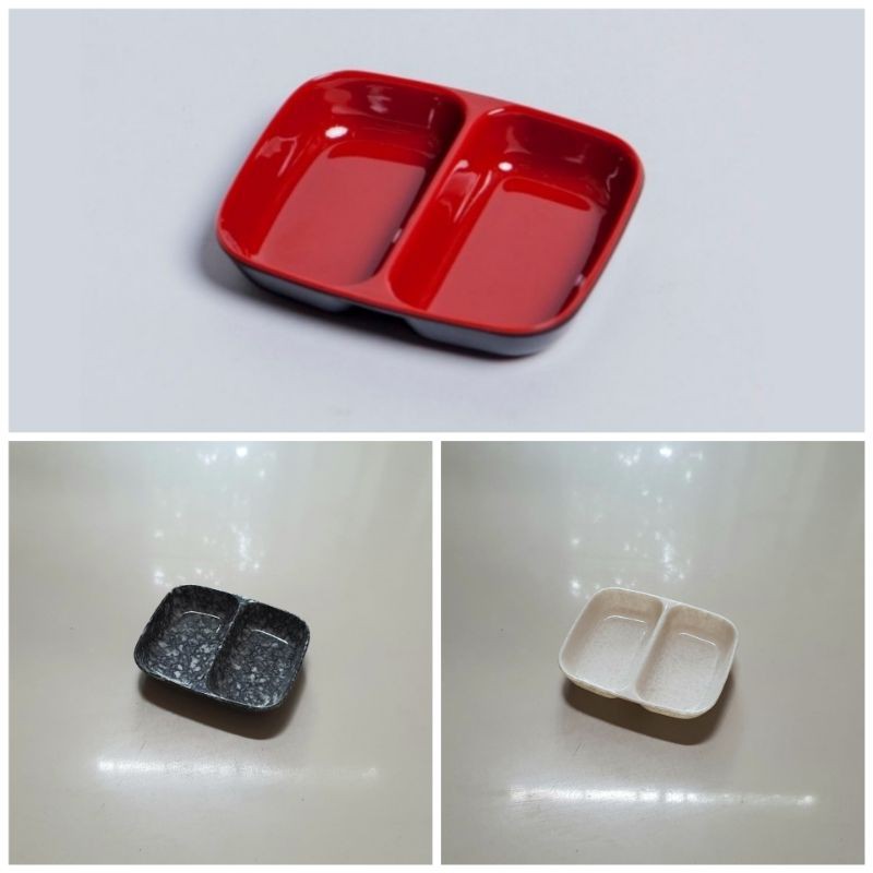 Nhà cửa & Đời sống > Bộ đồ bàn ăn > Tô || Chén chấm/Dĩa tiêu 2 ngăn (C101) nhựa Melamine Đỏ Đen/Vân ĐáCòn hàng