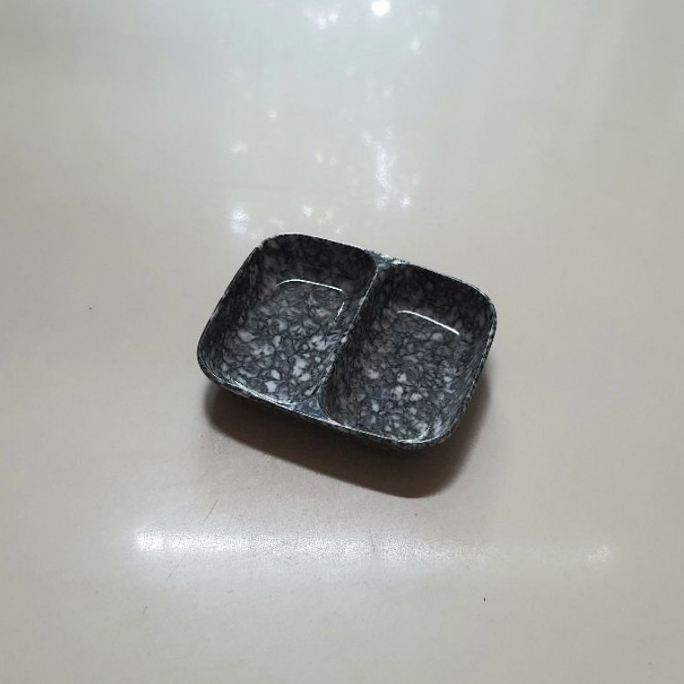 Chén chấm/Dĩa tiêu 2 ngăn (C101) nhựa Melamine Đỏ Đen/Vân Đá