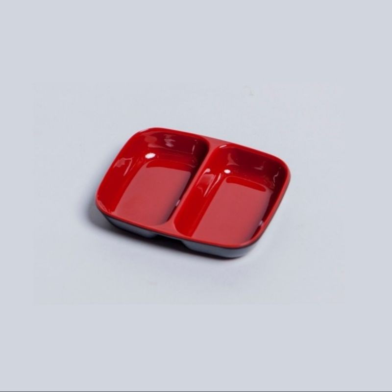 Dĩa tiêu 2 ngăn (C101) nhựa Melamine 2 lớp đỏ đenKích thước: 9.0 x 7.3 x 1.5 cm