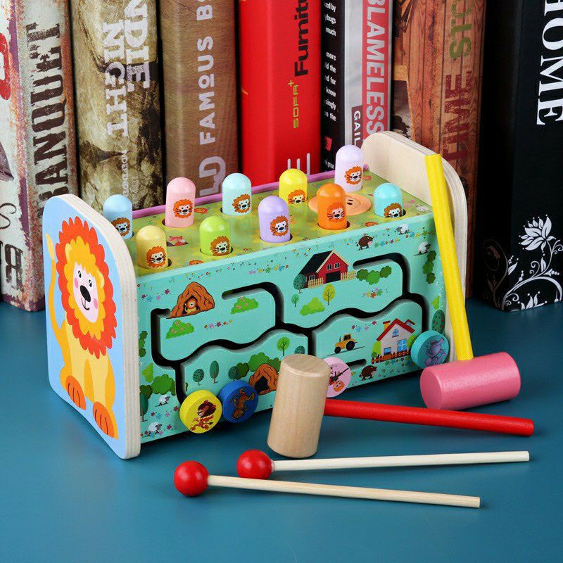 Giới thiệu Đồ chơi đập chuột đa năng cho bé, Đập chuột sư tử kèm đàn bằng gỗ