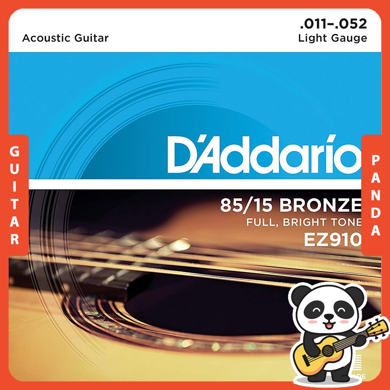 Dây đàn Acoustic Guitar D’Addario EZ910 là sản phẩm dây Bronze của hãng D’Addario là một hãng chuyên sản xuất dây đàn nổi tiếng tại Mỹ; kích cỡ .011-.052( nghĩa là dây nhỏ nhất có kích thước .011inch; dây to nhất có kích thước .052inch), loại Light Gauge.