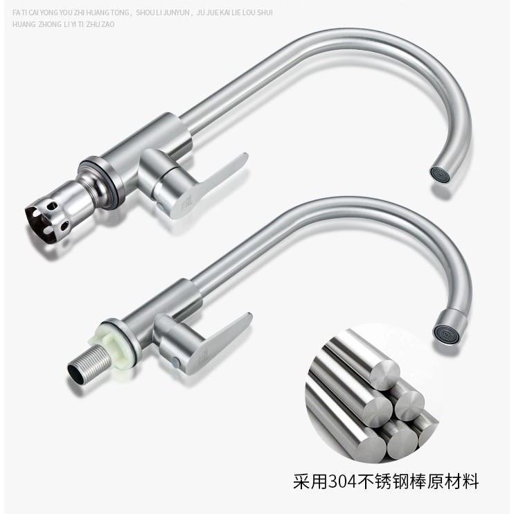 Vòi Rửa Chén Bát Lạnh Inox 304 quay 360 độ dùng cho 2 hộc chậuSử dụng cho 1 đường nước lạnh