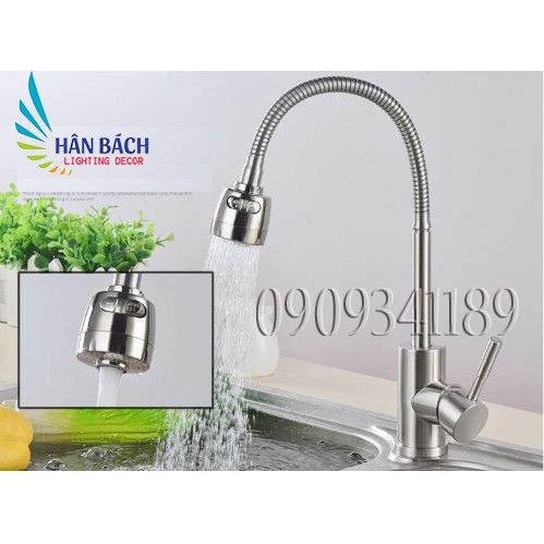Vòi đơn chậu rửa bát Inox 304 thân xoắn 2 chế độ nước