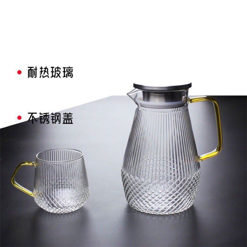 Bộ bình kèm ly quai thủy tinh cao cấp quai vàng với chất liệu Borocilicate chịu nhiệt lên tới 120° được mọi người yêu thích bởi kiểu dáng sang trọng và hiện đại. Bộ bình ly quai có thể sử dụng với nhiều công năng khác nhau như pha trà hoa, trà trái cây hay đơn thuần chỉ là để đựng nước uống hàng ngày.🎗Bộ gồm:
