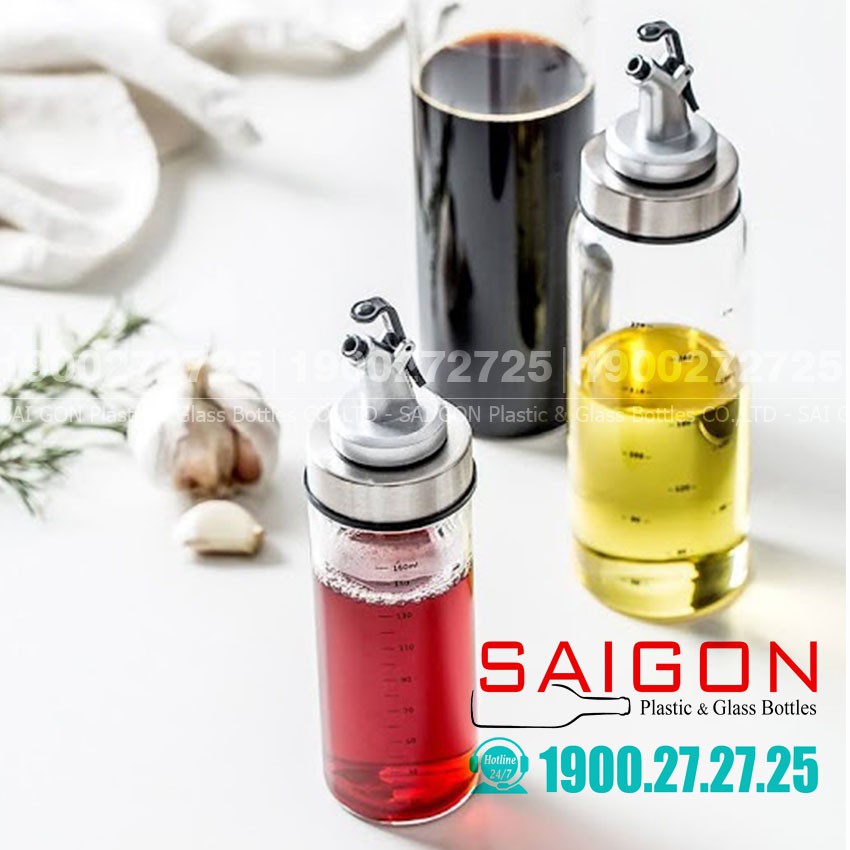 Giới thiệu Chai Thủy Tinh Rót Dầu Có Chia Vạch 170ml | 300ml | 500ml , Tùy Chọn Dung Tích