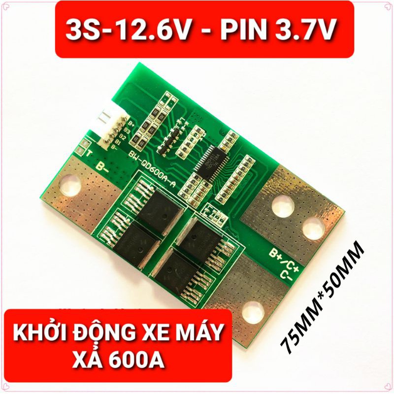 achun.vn - MẠCH BẢO VỆ PIN & KHỞI ĐỘNG XE MÁY 3S-12.6V XẢ 600A - HỆ PIN 3.7V