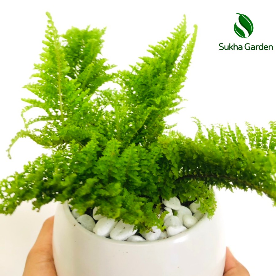 Nhà cửa & Đời sống > Làm vườn > Cây cảnh || Cây Dương xỉ mini để bàn kèm chậu gốm tráng menCòn hàng