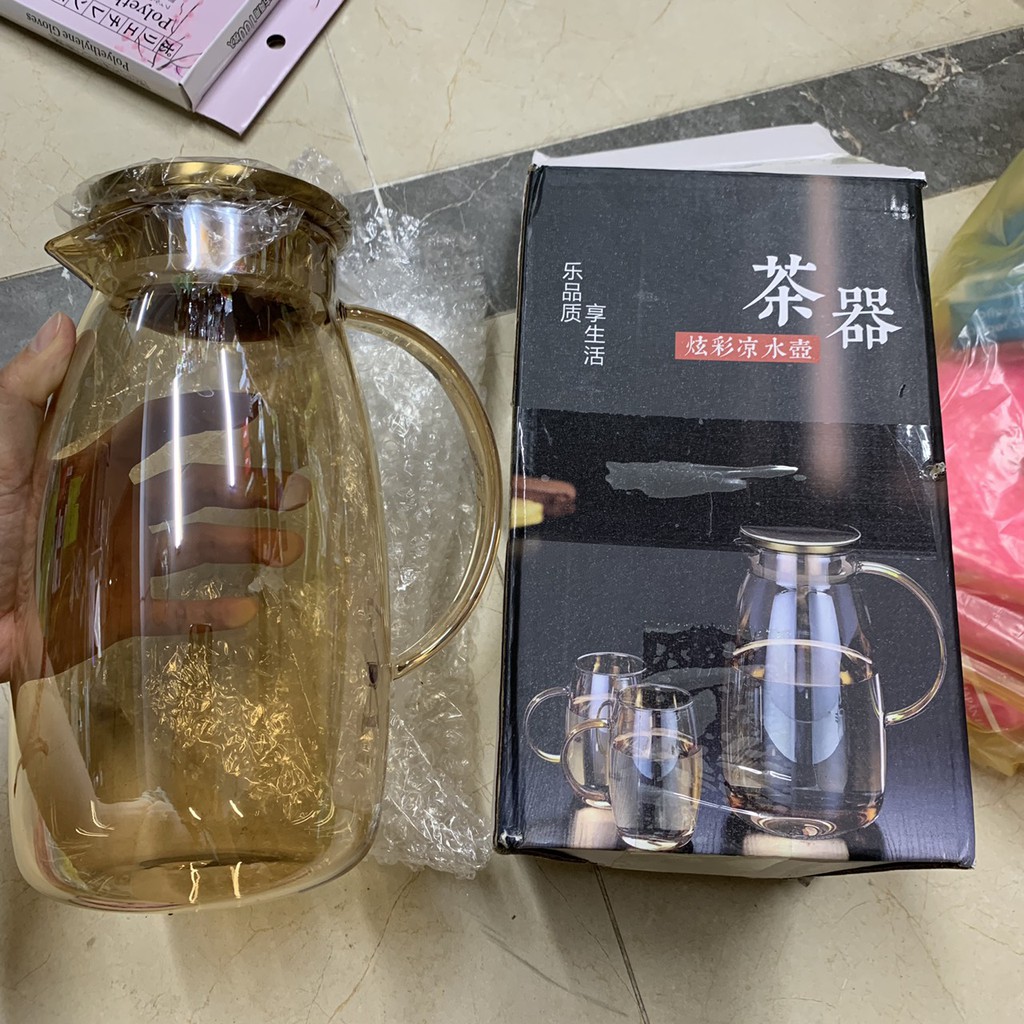 Nhà cửa & Đời sống > Bộ đồ bàn ăn > Bình nước & phụ kiện || Bình nước thủy tinh chịu nhiệt ánh vàng 2L (dáng bầu)Còn hàng
