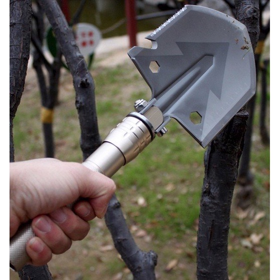 🔰 Xẻng có thể gấp 90 độ thành cuốc, trên lưỡi có một bên là lưỡi dao, một bên là răng cưa tùy chọn để sử dụng