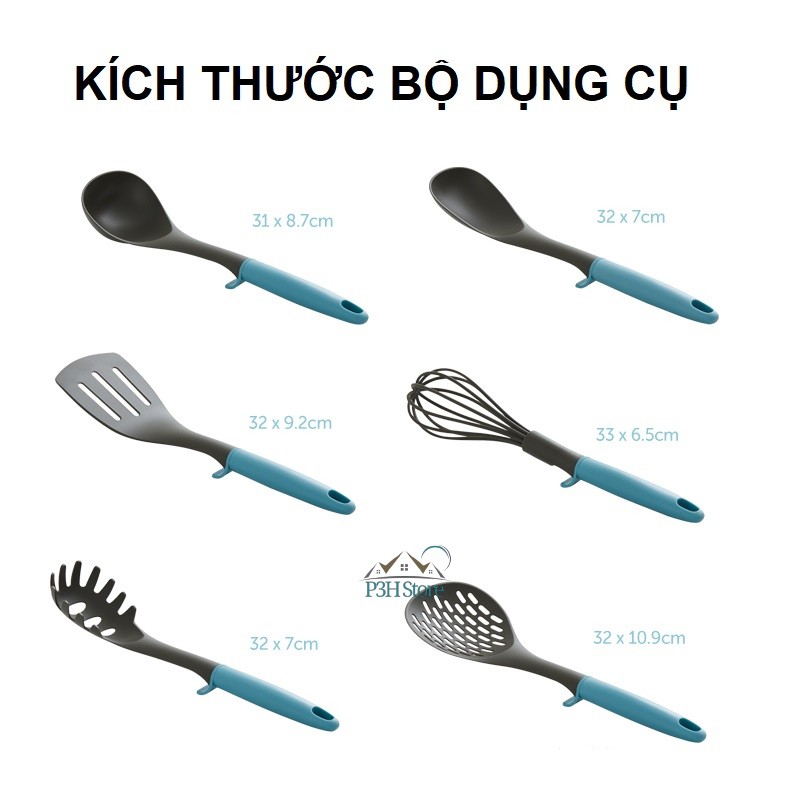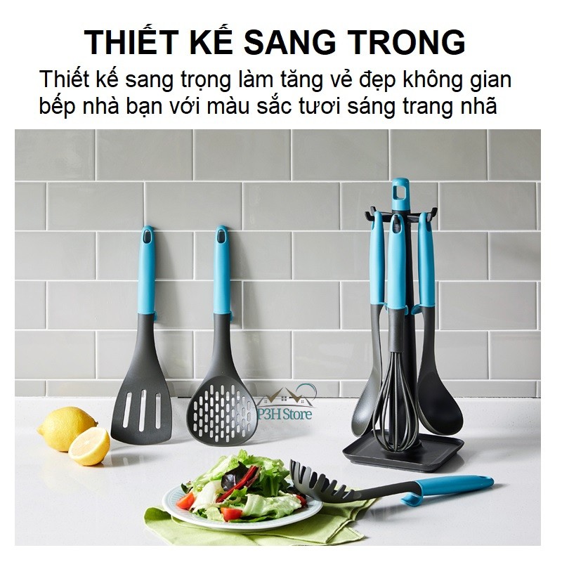 - Thiết kế đế treo tiện lợi , tay cầm từng món vừa vặn, chống trơn trượt giúp bạn thực hiện các công việc nấu nướng được dễ dàng hơn.