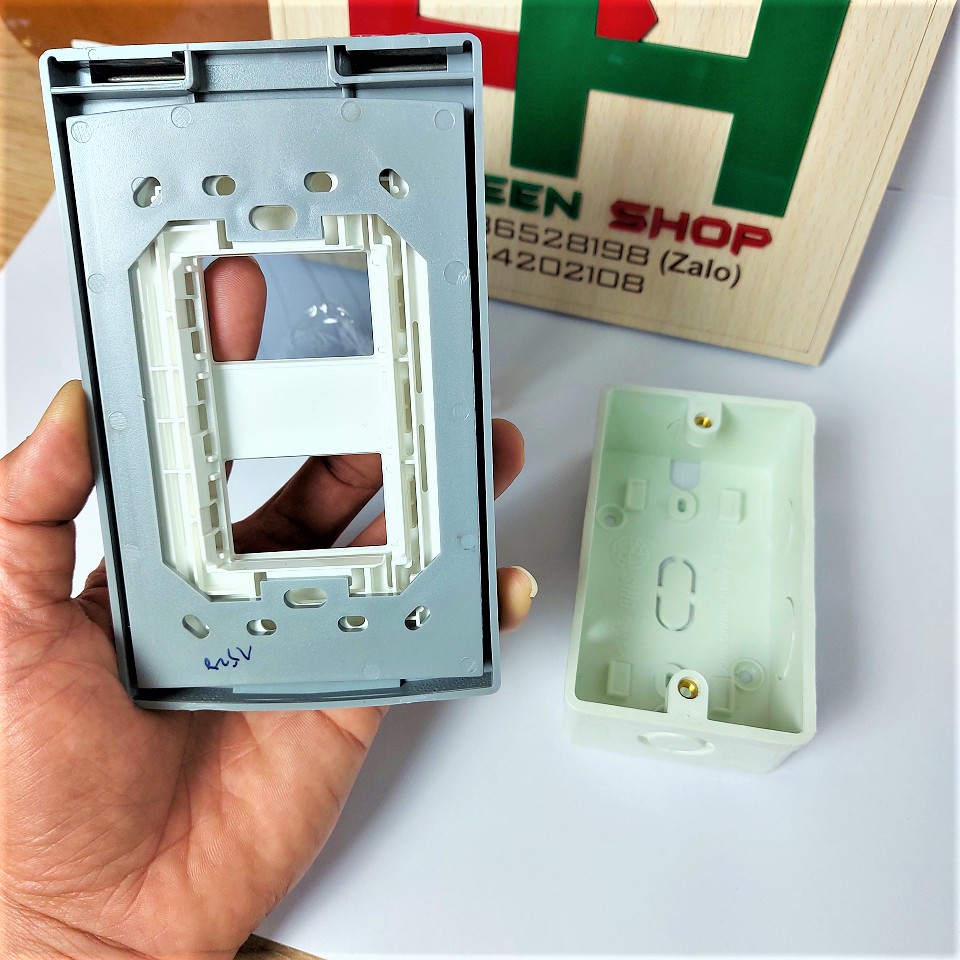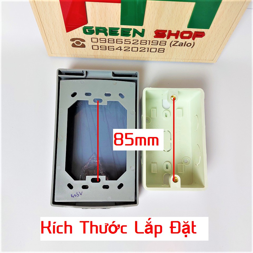 - Kích thước lắp đặt: Lắp vừa trên đế âm/đế nổi chữ nhật có 2 lỗ bắt vít 2 đầu cách nhau 8,35cm