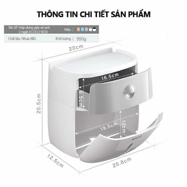 Giới thiệu Hộp để giấy vệ sinh ECOCO 2 tầng Nhựa ABS cao cấp siêu bền, đẹp