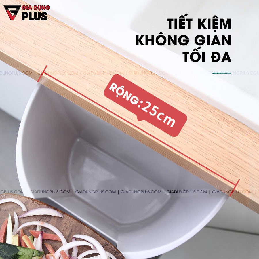 - Thùng rác treo cánh tủ làm từ nhựa PP cao cấp có trang bị thanh gạt rác giúp không bẩn tay, dễ dàng thay bao đựng rác.
