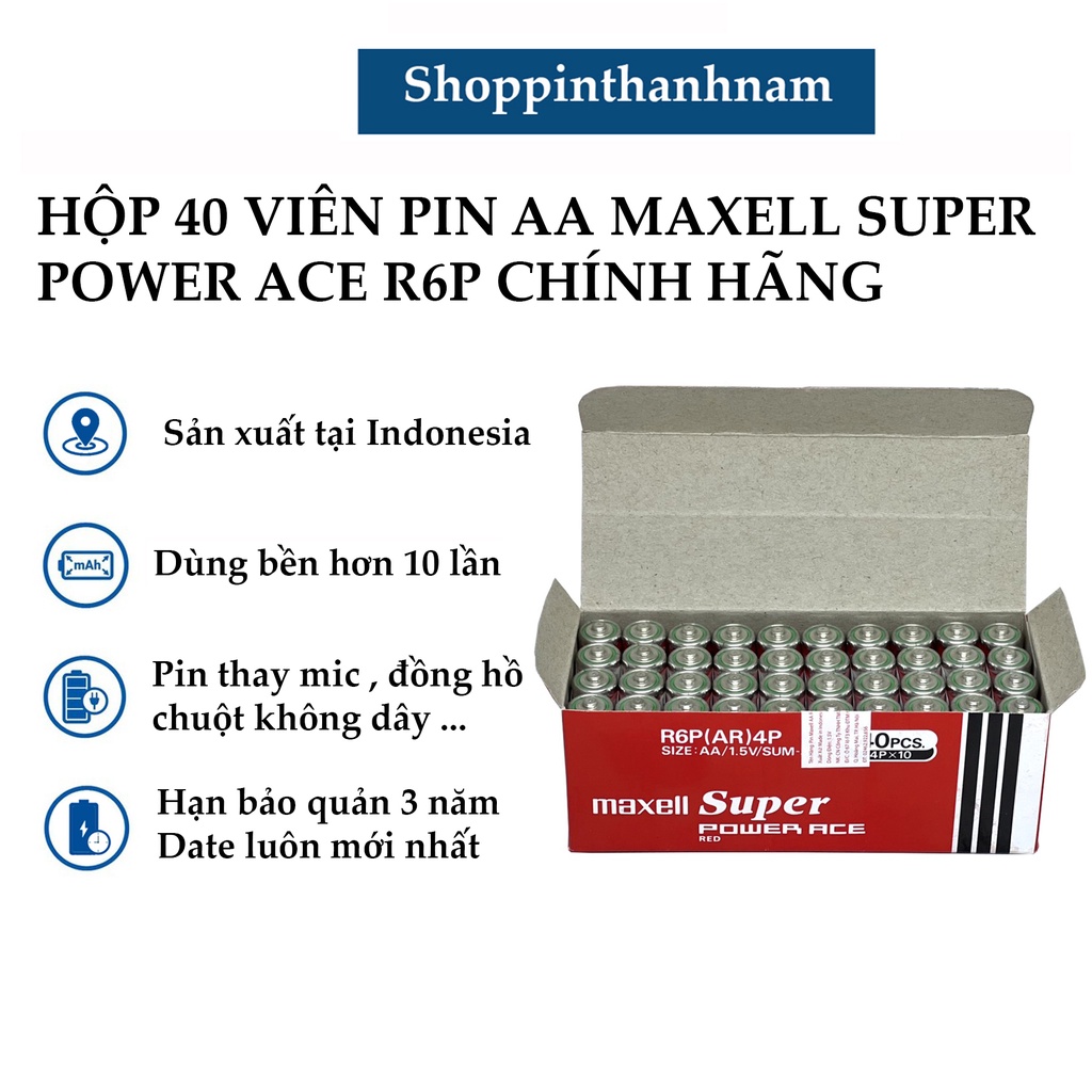 - Hộp 40 viên pin AA Maxell tiểu super R6P chất lượng cao- Kích cỡ : pin AA , pin tiểu
