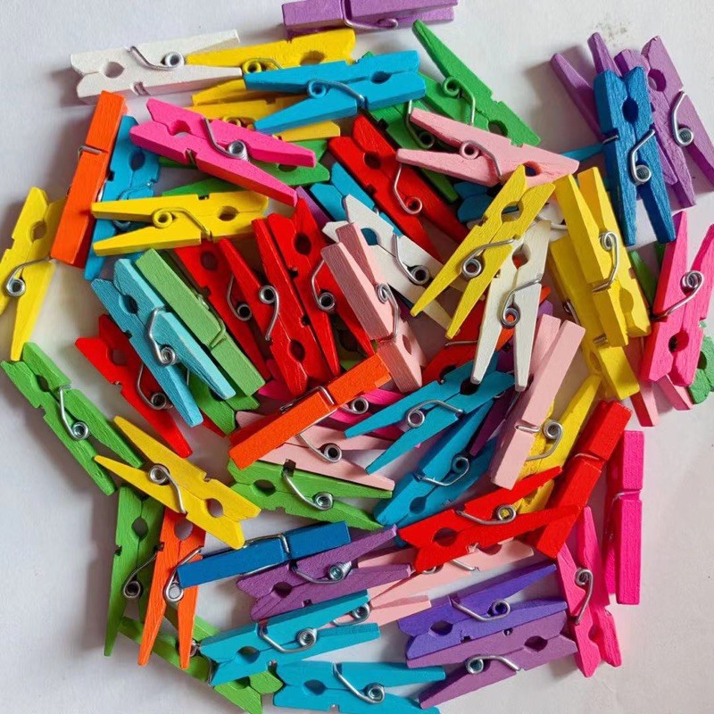 sỉ 50 kẹp gỗ các màu ( từ 20 túi giá tốt)Kích thước sản phẩm: 2.5cm