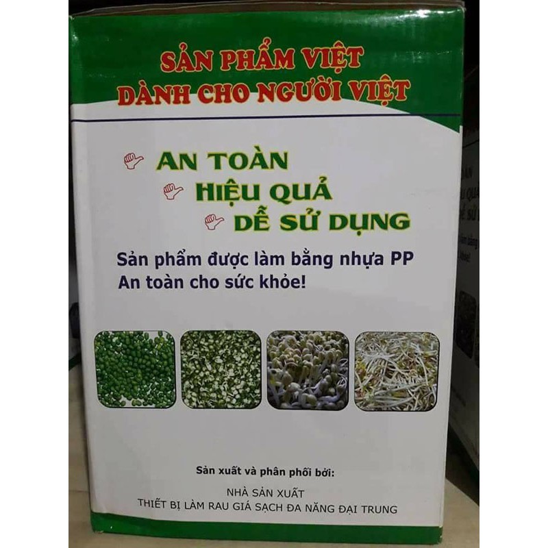 - Thiết kế đa năng có thể làm giá đỗ, rau mầm, làm dưa hành, cà. có thể làm từ 100 – 300 gram đỗ: 100 gram đỗ xanh được 0,8 kg rau giá. 200 gram đỗ xanh được 1,6 kg rau giá. 300 gram đỗ xanh được 2,5 kg rau giá.
