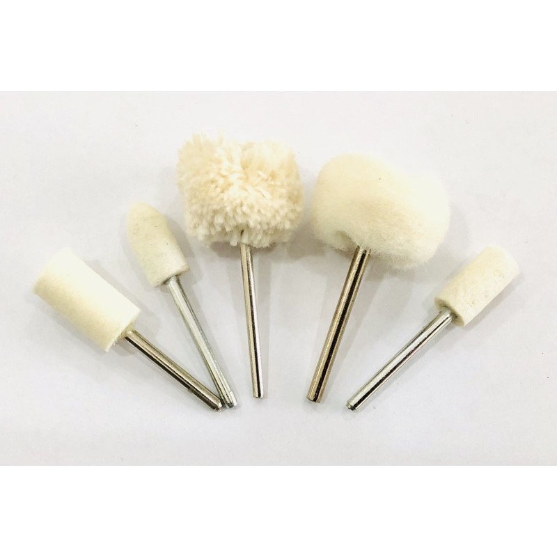 Bộ 5 đầu đánh bóng lông cừu mini cho máy đánh bóng cầm tayĐầu nỉ mài mòn, đầu nỉ phá xước, đầu nỉ tạo bóng