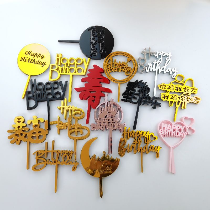 Nhà cửa & Đời sống > Dụng cụ nhà bếp > Dụng cụ nướng & trang trí bánh || Túi 10 hình cắm mica tráng gương trang trí bánh sinh nhật, topper cakeCòn hàng