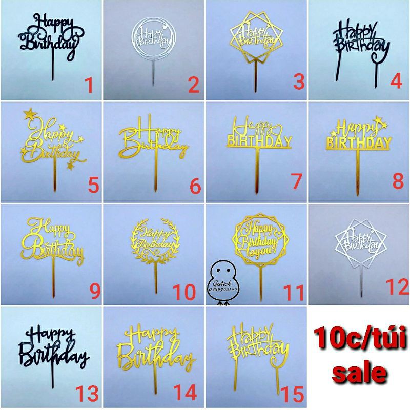 Túi 10 hình cắm mica tráng gương trang trí bánh sinh nhât.Quy cách: 10 que/túi