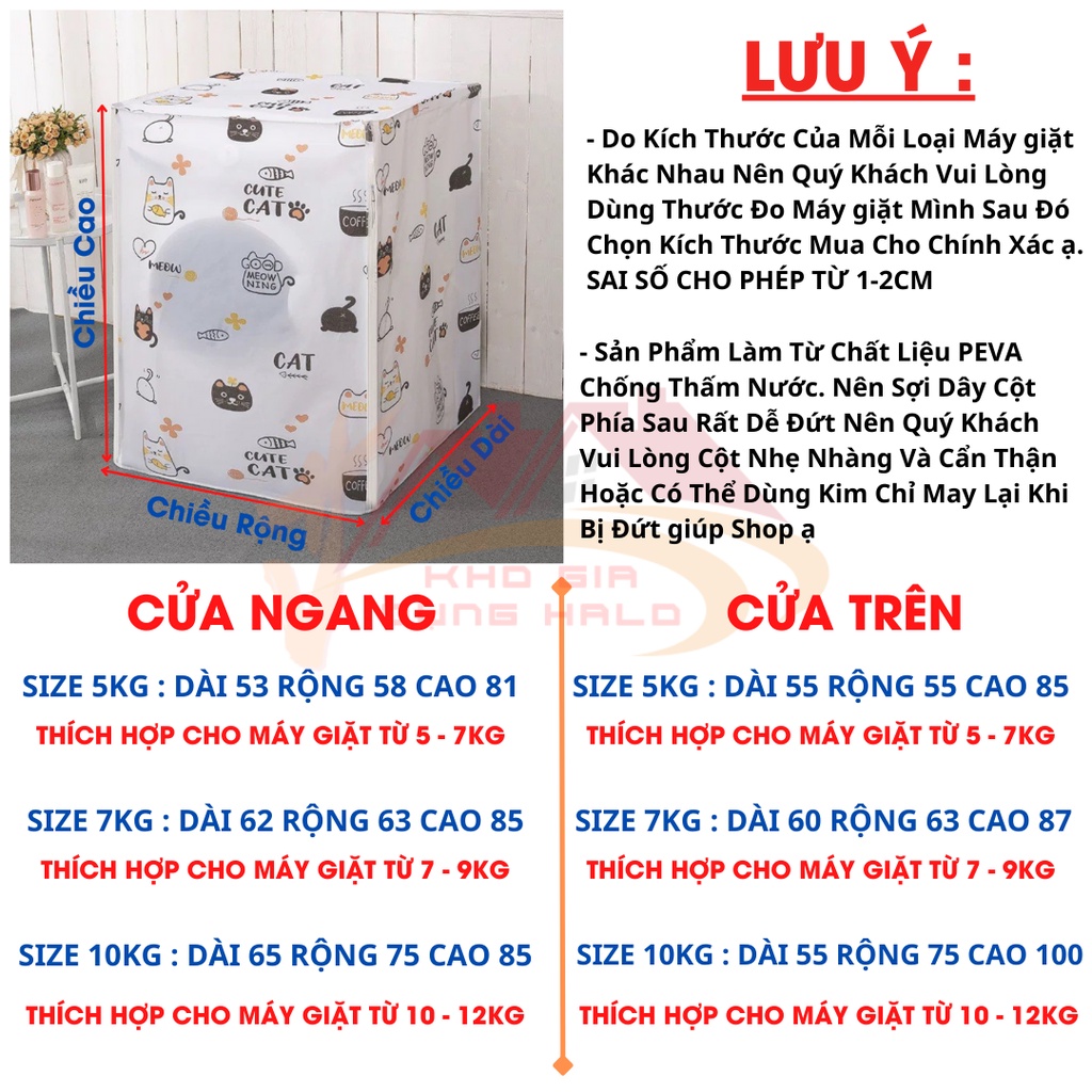 BỌC MÁY GIẶT CỬA NGANG, CỬA ĐỨNG DÀNH CHO MỌI LOẠI MÁY ẠLưu ý :